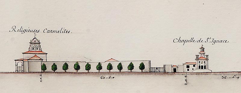 Los últimos años de la presencia de los jesuitas en Pamplona estuvieron marcados por el intento de levantar junto a la basílica una casa de ejercicios y un seminario de nobles. La oposición de las Carmelitas y la llegada al trono de Carlos III frustraron el proyecto, para el que se requirieron planos de Roma. El famoso padre Sebastián de Mendiburu ya tenía apalabrada la cantidad de 20.000 pesos.