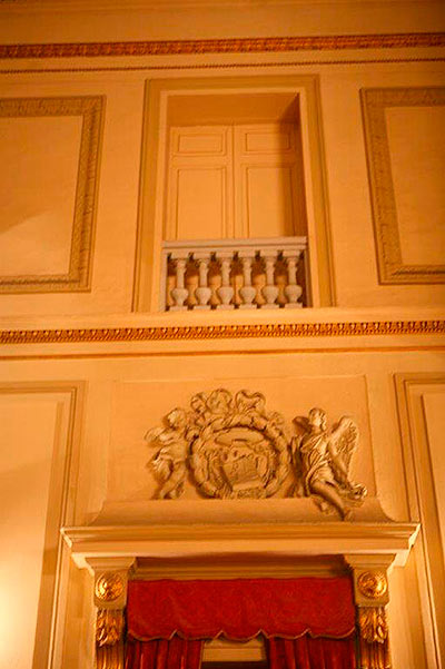 Las oblongas trece tribunas voladas, dotadas de espesas celosías doradas, se vieron sustituidas por los actuales once balcones, cuyos balaustres son exactamente del mismo tipo que los de la fachada de la Catedral de Pamplona, diseñada por Ventura Rodríguez, quien a su vez los imita del arquitecto italiano Vanvitelli. Se ampliaron las puertas del crucero y sobre los dinteles se colocaron, como motivo escultórico, sendos tondos de guirnaldas sustentados por ángeles, enmarcando atributos episcopales, en una composición de recuerdo todavía barroco, pues las figuras no se ajustan a los límites del encuadre. Ya se ha hecho referencia a la sustitución del arco por dintel y a la simplificación radical del ornato del frontispicio de entrada, que en todo caso conserva la verja de estirpe barroca. Finalizadas estas reformas de Ochandátegui, pudo reinaugurarse la Capilla el 7 de julio de 1805, tras colocarse el Santo en el trono, con la celebración del oportuno pontifical.