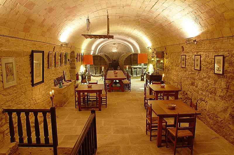 En la planta baja de la casa, junto a otras dependencias de servicio convertidas hoy en salas expositivas, se ubica la antigua bodega de la casa, establecida a mediados del siglo XVIII. El suelo de la bodega procede del enlosado del palacio real de Tafalla, vendido por el patrimonio de la Corona a finales del siglo XIX. Dividida en dos salas, la primera, la antebodega, paralela a la fachada principal, alberga una gran cocina tradicional decorada con motivos taurinos y elementos etnográficos vinculados a su función, mientras que la segunda, perpendicular a la fachada, es rectangular y se articula en dos espacios diferentes; en el primero, presidido por una gran mesa corrida, encontramos antiguas botellas y enmarcaciones de carteles y títulos de premios concedidos a lo largo del siglo XIX a los vinos de la casa, mientras que en el segundo todavía hoy se puede ver alguna de las barricas de madera originales utilizadas en la casa para hacer vino.