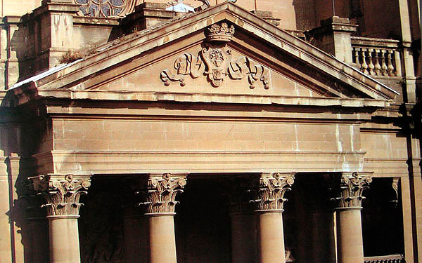 El verdadero protagonista de la fachada es el pórtico clásico que da acceso al templo. Tetrástilo, con columnas dobladas en profundidad, se corona por un entablamento, con su arquitrabe, friso y cornisa perfectamente proporcionados y desprovistos de cualquier tipo de decoración. Lo remata un potente frontón triangular que, como única decoración, alberga el escudo del cabildo. La fachada evoca la arquitectura de Palladio, como ya observaron algunos maestros de obras mientras se levantaba. En el pórtico se ha querido potenciar la volumetría de los elementos constructivos y prescindir de la decoración, tendiendo a la depuración y la sobriedad de formas que caracterizan a la arquitectura académica.