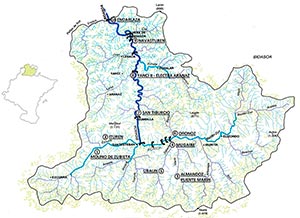 Plano de situación elaborado a partir de El agua en Navarra, Pamplona, Caja de Ahorros de Navarra, 1991.
