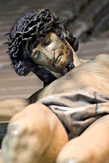 Realizado en madera de nogal, posee todas las características de la estatuaria clásica en mármol, asemejándose a representaciones de dioses y héroes de la Antigüedad. Se ajusta perfectamente al ideal de imagen devocional de la Contrarreforma por representar a Cristo muerto como culminación de la redención del género humano. Al rigor alcanzado en la imitación de la anatomía con huesos, músculos, tendones y venas, se añade una encarnación a pulimento coetánea que nos ha dejado ese color marfileño y el mínimo aparato de sangre, localizado en los regueros que parten de los clavos o las gotas que se deslizan por la frente. Una característica italiana es esa sensación de la blandura de la carne y la piel con amoratamientos grises violáceos en aquellas zonas del cuerpo más sometidas a los golpes durante los castigos previos que sufrió de manos de los sayones.