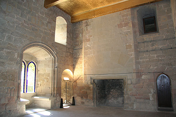 Como preciosa reliquia se conservan una serie de paneles de yeso en el muro septentrional de la Gran Torre, a la altura del piso noble. Las fotografías antiguas nos enseñan lo cerca que estuvimos de que también estos frágiles complementos desaparecieran, puesto que antes de la intervención restauradora del siglo XX solamente los protegía un tejadillo. Los motivos que los adornan responden a patrones de tradición islámica (lazos) y cristiana (motivos vegetales más realistas). Merece la pena detener la mirada en el modo como ciertos diseños muy frecuentes en la tradición andalusí fueron personalizados para el rey mediante la introducción de emblemas personales o familiares, como la hoja y los frutos de castaño.