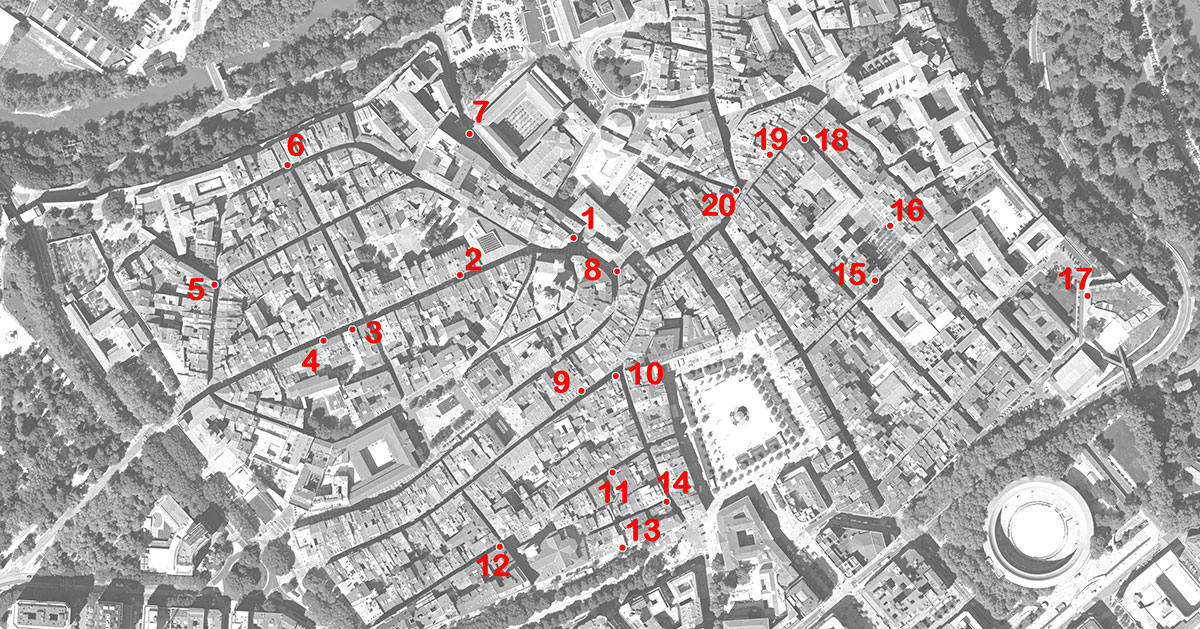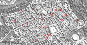 El itinerario que se propone para reconocer este aspecto del patrimonio histórico y etnográfico de Pamplona recorre cada uno de los tres Burgos que fueron unificados en 1423 por el Privilegio de la Unión, pero que aún hoy se reconocen en su peculiar trazado, conservando su propio carácter.