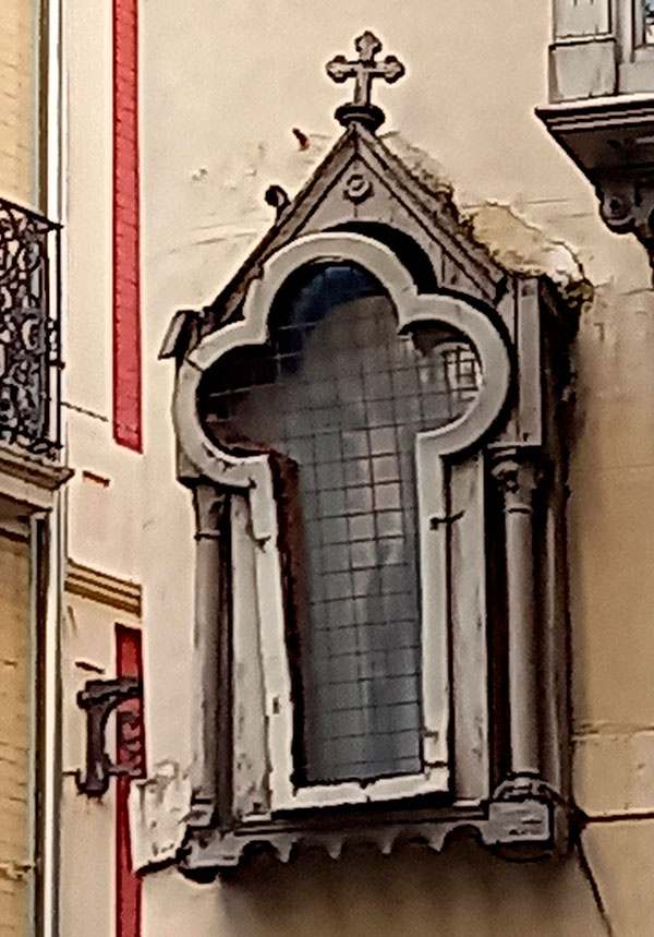 Calle Zapatería, esquina Pozoblanco. La imagen del Cristo se halla en un pequeño armario adosado al muro. La puerta con cristal que protege la imagen se ajusta por su forma a la cruz, mostrando en la parte alta tres lóbulos que corresponden al cabezal y los brazos de la cruz. Esta puerta está enmarcada a los lados por unas delgadas columnas y en la parte superior, por un frontón rematado por una pequeña cruz. De la veneración a esta imagen queda constancia en el libro de Actas del Barrio de la Salinería, donde se habla de la capilla de Cristo Crucificado, explicando que se le enciende un farol todas las noches, dos velas y farol en las procesiones, y Viático de la parroquia, Corpus Christi, San Fermín y Viernes Santo, se apaga tras concluir la procesión.