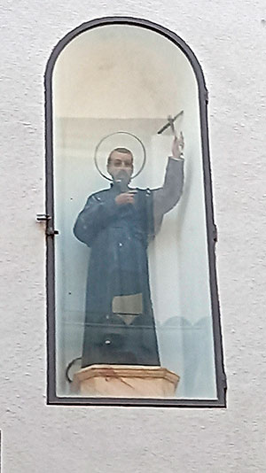 En la fachada de esta casa, se abre a la altura de la planta principal una hornacina de buen tamaño, que dispone de un marco metálico delgado con un cristal que protege la imagen de san Francisco Javier, representado con el hábito de jesuita y mostrando en la mano izquierda, levantada por encima del hombro, una sencilla cruz. Es obra del siglo XX y responde al nombre que, en honor del santo, le asignó a la calle el Ayuntamiento, en recuerdo de la peregrinación del 5 de marzo de 1886 al castillo de Javier con ocasión del cólera que asolaba la ciudad.
