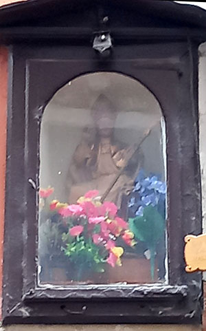 Calle San Nicolás, n.º 11. Situada a la altura del primer forjado, junto a la medianera con el n.º 13, se conserva una hornacina empotrada en el muro, con marco de madera y protegida con un cristal, con un relieve de san Nicolás, quizá del siglo XVII, aunque la primera referencia documental es del 1772. El 26 de abril de ese año, el prior del Barrio de la Tornerías decidió sustituir una imagen muy deteriorada de san Exuperio, por una imagen de san Nicolás.