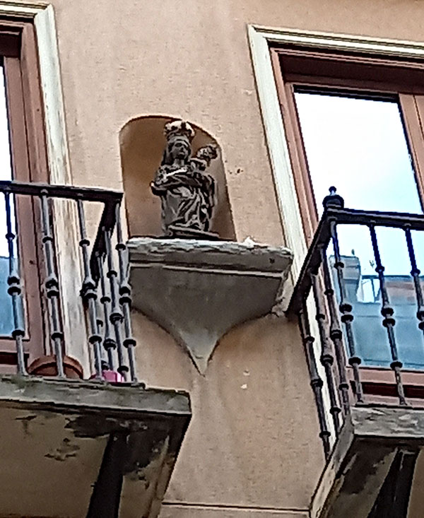 En la calle Zapatería, 46. En una hornacina abierta con poco fondo, rematada por un arco de medio punto, sin enmarcar, se conserva una talla pequeña de la Virgen con el Niño en brazos, y coronado como su Madre, que se apoya en una ménsula de cierta potencia. La hornacina se sitúa en la segunda planta en eje con el escudo de los Basset-Aldaz situado entre los balcones de la planta primera. La casa, y por tanto la hornacina, es de 1774, por lo que la imagen, por sus características barrocas, sería anterior a la construcción de la casa. No obstante, es posible que la idea de introducir esta imagen en la fachada, tenga su origen en la imagen de la Inmaculada que como patrona del barrio de las Tiendas, se situaba, al menos en 1779, en esa misma calle.