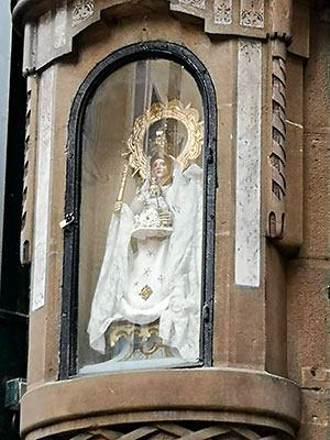 En la esquina San Saturnino con calle Nueva. En los libros de Actas del Barrio de la Calle Mayor y Bolserías hay una anotación en 1751 que se refiere a la imagen de la Virgen del Camino que había en la esquina de la Plaza de la Fruta, actual plaza Consistorial. Posiblemente se trata de un antecedente de la imagen que se conserva actualmente en la farmacia que ocupa la esquina del inicio de la calle Nueva en la Plaza Consistorial. La hornacina, integrada en la composición de la fachada de la farmacia que ocupa la planta baja, se sitúa en la misma esquina. La imagen de la Virgen queda protegida por un cristal con un marco metálico delgado rematado con un arco de medio punto. El conjunto de la hornacina está enmarcado por elementos que recuerdan la decoración propia del estilo neomudéjar.