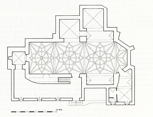 Un edificio en el que a finales del quinientos hemos documentado la intervención en su fábrica del cantero natural de Gartzain Miguel de Oiz y sus hijos, Juanot y Juanes, labor que estuvo concluida para 1598 y que se centró la zona de la nave y la cabecera. Reflejo de ello son las cubiertas de nervios pétreos que voltean los dos tramos de la nave y el crucero, de similar diseño, que conforman elaboradas bóvedas de crucería estrellada, en la que a los terceletes se suman nervios curvos que describen una estrella de cuatro puntas y un círculo trazado en torno a la clave polar. Asimismo, la cabecera recibe una bóveda de nervios rectos más sencilla, una media estrella de cuatro puntas que se adapta perfectamente al espacio poligonal. En los siglos del Barroco el templo recibió nuevas intervenciones, cubriéndose los brazos del crucero con bóvedas de cañón con lunetos, al igual que la sacristía añadida en el lateral derecho del ábside, a la vez que los muros perimetrales del templo quedaron recorridos en la parte superior por una moldurada cornisa con placas recortadas.