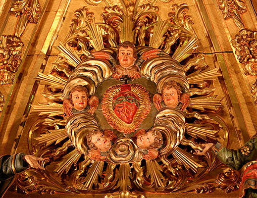 Sagrados Corazones de Jesús y de María, iconografías que sin lugar a dudas se debieron a la influencia de los jesuitas que por aquellos años difundían mediante todo tipo de medios -misiones, libros, novenas, congregaciones y grabados- aquellas devociones, y muy particularmente el apóstol de la devoción al Sagrado Corazón, el Padre Juan de Loyola, que estuvo de rector en el colegio de Tudela entre 1729 y 1732.