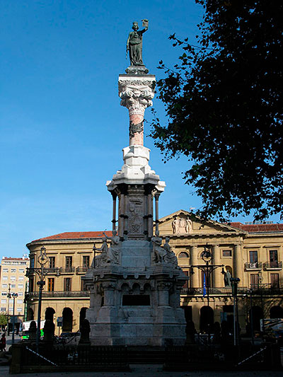 El monumento a los Fueros supone un hito en la compleja configuración identitaria contemporánea de Navarra. Erigido en el Paseo de Sarasate en 1903, vino a simbolizar la reacción navarra en defensa de sus derechos ante el proyecto antiforal presentado en 1893 por el Ministro de Hacienda Germán Gamazo, considerando que menoscababa la autonomía fiscal reconocida a la provincia en la Ley Paccionada de 1841.