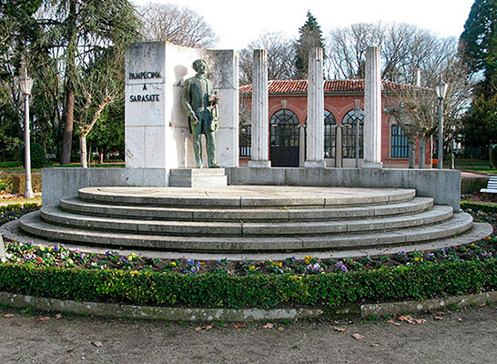 En 1959, Pamplona rendía homenaje a uno de sus hijos más preclaros, el violinista Pablo Sarasate (Pamplona, 1844-Biarritz, 1908), cuya brillante carrera le llevó a triunfar por toda Europa y América, siendo considerado, junto a Paganini, como el mejor concertista de su instrumento. Con tal motivo, el Ayuntamiento de la ciudad promovió un monumento en su honor, en sustitución del levantado en 1918 en los jardines de la Taconera, que pasó a dedicarse al músico y compositor burladés Hilarión Eslava.