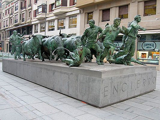 El monumento al Encierro, que desde el momento de su inauguración en 2007 se ha convertido en una de las principales señas de identidad de la ciudad, cuenta con un amplio recorrido histórico que da comienzo en 1991 y culmina en 2007 con la ejecución por Rafael Huerta del proyecto definitivo, en el marco del proceso de peatonalización y embellecimiento de la Avenida de Carlos III.