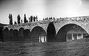 Se desconoce la época de construcción, aunque podría apuntarse al Renacimiento por el empleo de arcos semicirculares y el perfil horizontal, frente a las fuertes pendientes características de las obras medievales. El puente ya es mencionado en las primeras ordenanzas que se conocen, del año 1543. Según se desprende de la documentación, formaba parte de la vía de comunicación que unía Valdizarbe y la Navarra Media con Guipúzcoa, para el comercio del vino, y con la sierra de Andía, para la trashumancia. La prosperidad generada en el pasado por el tráfico de viajeros y mercancías se manifiesta en las principales devociones del pueblo, san Julián y san Cristóbal, cuyas leyendas versan precisamente sobre el paso de un río.