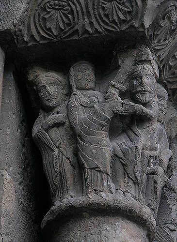 De los capiteles que coronan las columnas, solo tres de los seis son historiados: uno del lado derecho y dos del izquierdo.
