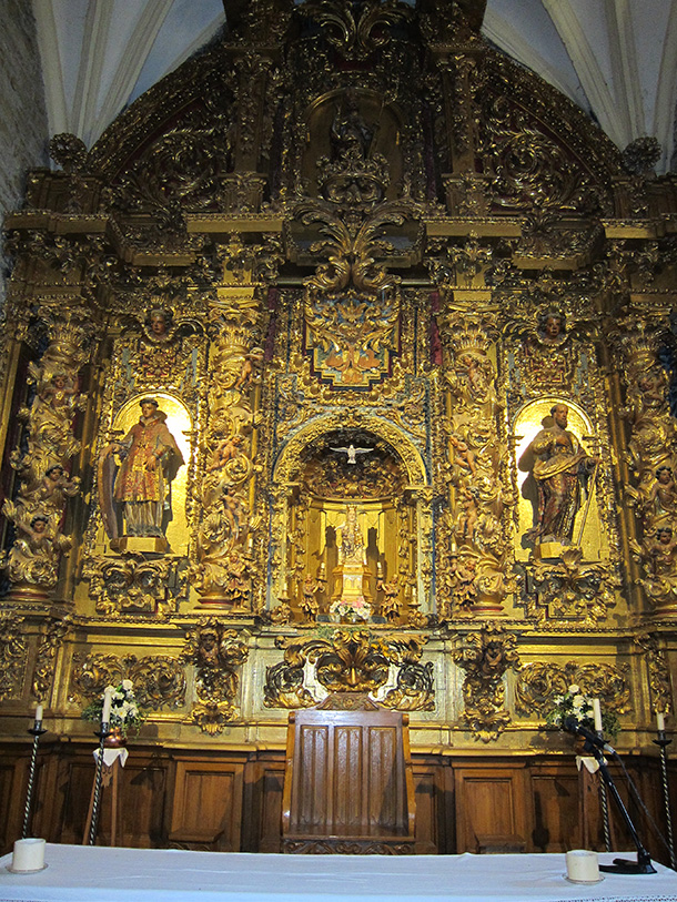 Presidiendo el santuario, al fondo de su sobria nave pétrea del siglo XVI y tras una reja que la tradición hace proceder del monasterio de Igal, se encuentra un hermoso retablo salomónico en cuya hornacina principal se venera la imagen gótica de Nuestra Señora de Idoia, de gran devoción en la localidad y en el Valle.