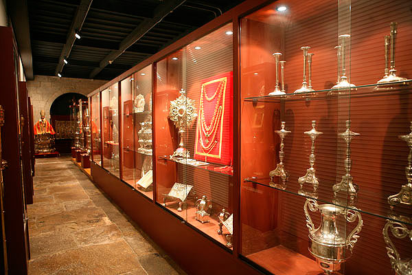 Más reducido es el número de joyas integradas en el ajuar de San Fermín, aunque todas ellas de excelente calidad, como una cadena de oro con un pectoral de esmeraldas enviado por don José de Armendáriz junto a las piezas de plata ya reseñadas en 1730, una cadena de oro regalada en 1757 por don Nicolás de Urtasun, o una sortija con una esmeralda, mandada desde Popayán, actual Ecuador, por don Juan Antonio de Zelaya en 1775.