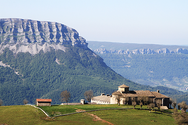 Introducción. Vista general del santuario, ante la sierra de Andía