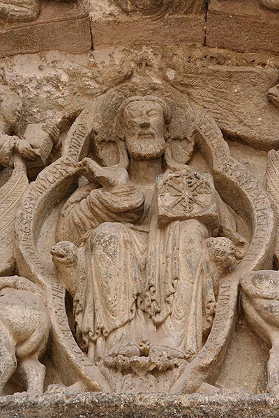 El tema interesó a los clérigos navarros de la segunda mitad del siglo XII: Pedro de París, también llamado Pedro de Artajona, obispo de Pamplona entre 1167 y 1193, en los años en los que supuestamente se realizó esta portada, escribió un tratado teológico sobre la Trinidad y la Encarnación que se conserva en la Biblioteca de la Universidad de Salamanca.