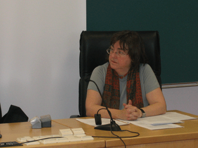 Doña Leticia Arbeteta habló de las luces y las sombras de la colección Lázaro Galdiano, financiero de origen navarro que conformó una colección de características internacionales, de carácter enciclopédico. Se refirió al por qué, cómo y qué criterio siguió para hacer esta colección, formada por 12.600 piezas, además de la biblioteca que consideró una de las mejores del mundo. Entre otros aspectos habló de las piezas más destacadas de la colección, como las tablas góticas, el San Juan en el desierto de El Bosco, pinturas de Coello, entre otras joyas y objetos preciosos.
