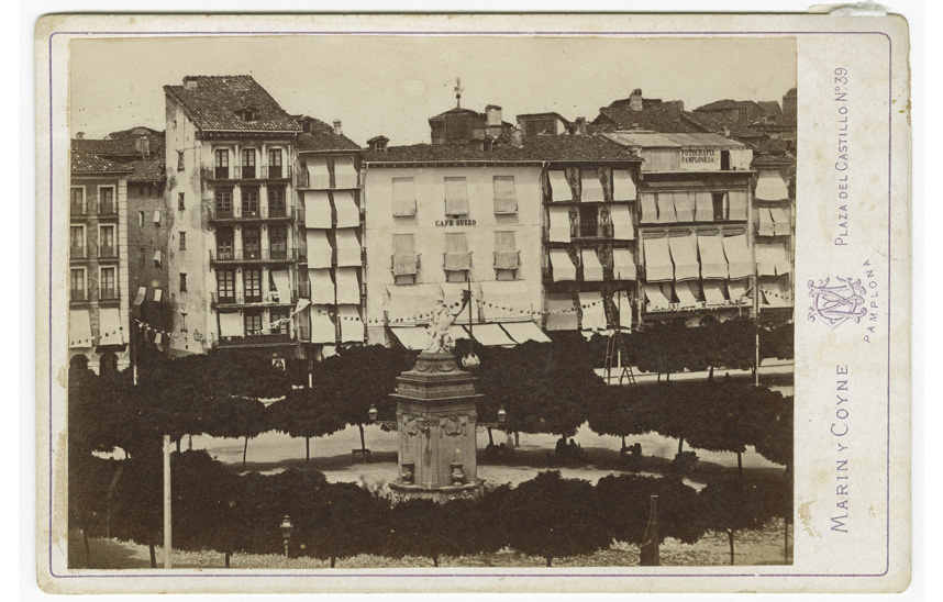 FotoColección José Ignacio Riezu Boj/Plaza de la Constitución, hoy Plaza del Castillo. Marín y Coyné, 1874, <i>carte cabinet</i>