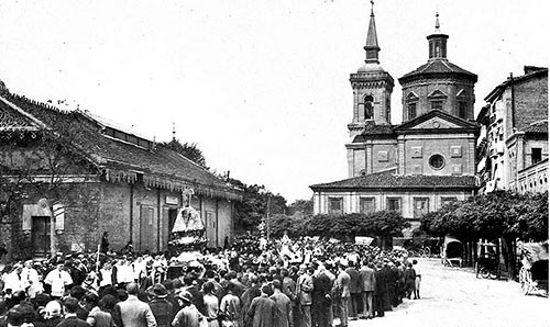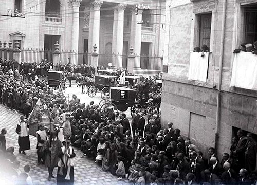 Paso procesional de la Virgen del Sagrario en la procesión del 24 de septiembre de 1922. Fotografía de José Martínez Berasáin. Archivo General de Navarra
