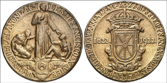 Medalla conmemorativa del III Centenario de la canonización de Javier. Diseñada por Julio Arrieta y realizada por Ramón Arcaya. Colección particular