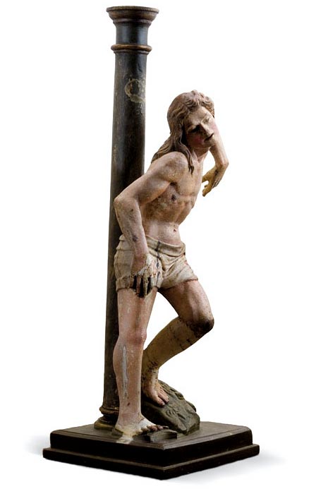 En algunas ocasiones, la figura aislada se acompaña de los verdugos con arcos, e incluso ballestas.