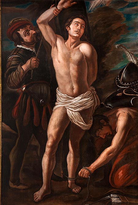 Preparativos para el asaeteamiento de san Sebastián por Pedro Ibiricu, 1687. Parroquia de San Pedro de la Rúa de Estella. Foto J. L. Larrión