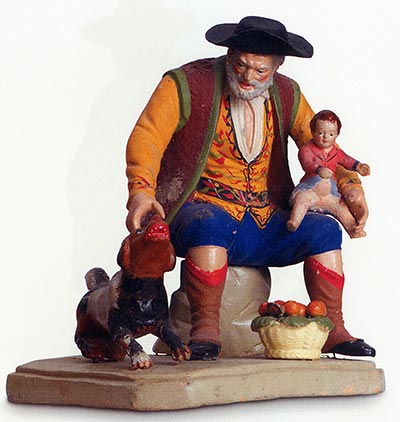 Pastor con niño y perro en barro policromado. Talleres murcianos, hacia 1885. Colección particular.