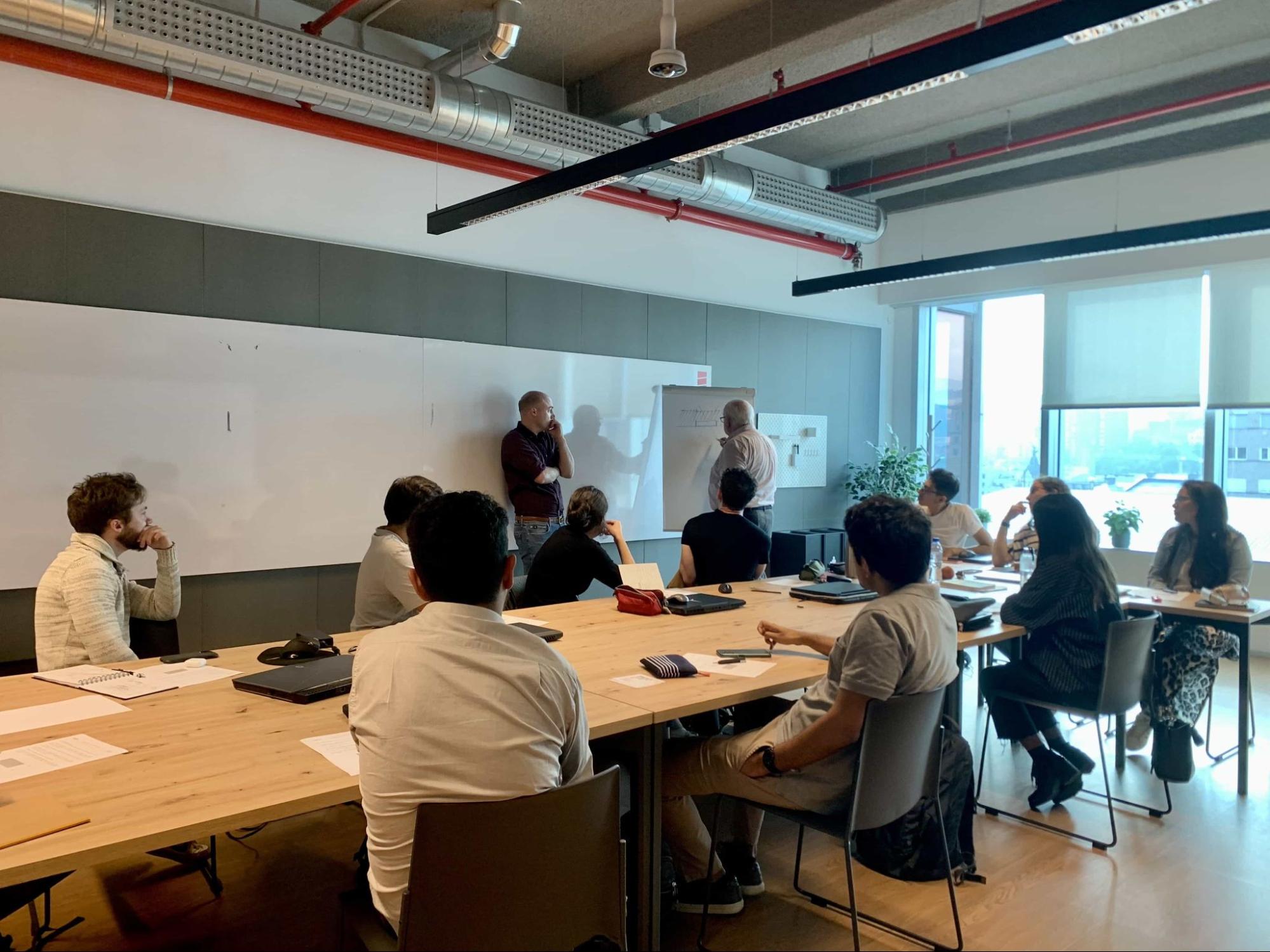 Se les ofreció una sesión introductoria al programa, seguida de la presentación e iniciación del workshop. Este estuvo guiado por los profesores Javier Cenicacelaya y Lander Uncilla. Con ellos estuvo también Luis Suárez Mansilla, director del máster.