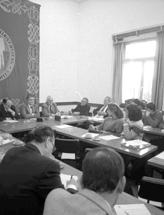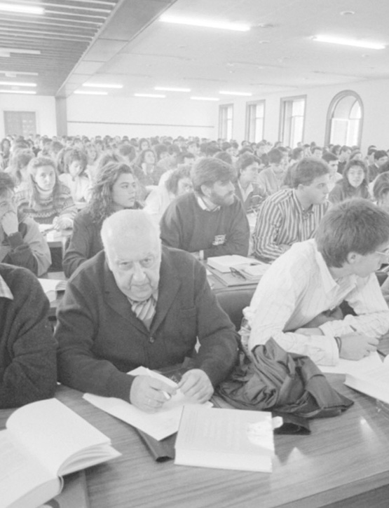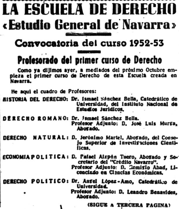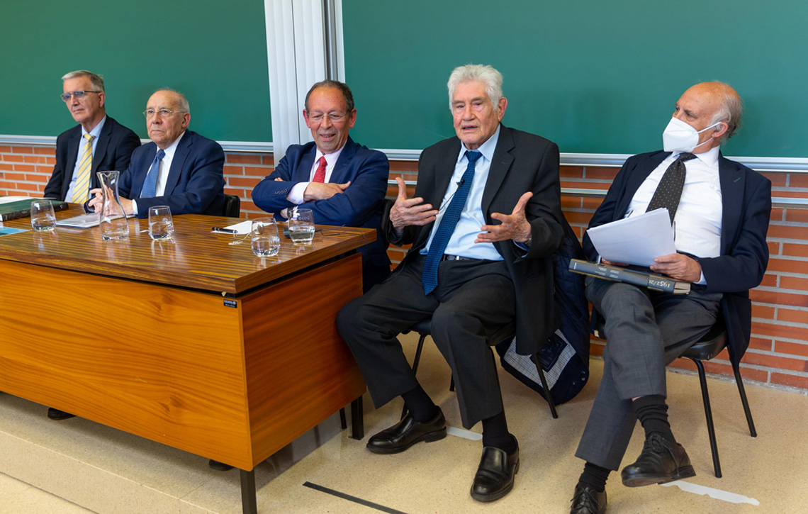 Juan Fornés, catedrático de Derecho Canónico, repasó todos los decanos que había tenido la facultad. El testimonio de Fornés se remontó hasta 1957 año en que él comenzaba sus estudios de Derecho en el Estudio General de Navarra, ahora Cámara de Comptos. Citó la figura de don Ismael Sánchez Bella, que dejó su puesto como profesor en la Universidad de Rosario (Argentina) para abordar la labor de iniciar la Escuela de Derecho. Fornés leyó parte de la correspondencia en la que el propio Sánchez Bella notificaba que la diputación había concedido 155.000 pesetas para poner en marcha la Universidad. “Yo necesito 266.500 pesetas. ¿Qué haremos? ¿Pedir una subvención?, cuestionaba entonces.