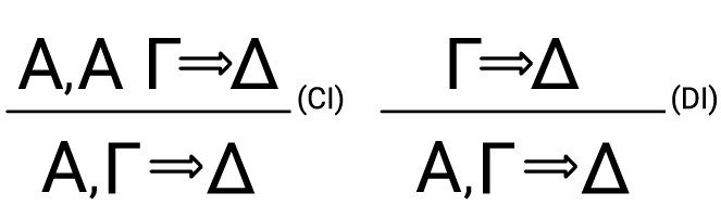 La regla nos permite movernos de un secuente a otro secuente que involucra vocabulario nuevo (en este caso, una conjunción). Otras reglas permiten introducir otras expresiones lógicas como disyunciones, condicionales o negaciones. Ahora bien, además de reglas operacionales, los cálculos de secuentes contemplan reglas que no introducen ningún vocabulario lógico. Tal es el caso, por ejemplo, de las reglas de contracción y debilitación:
