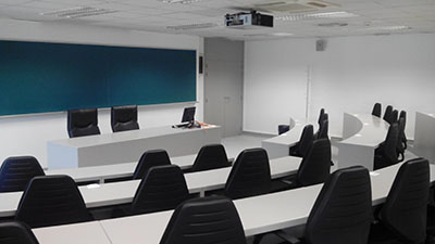Pantalla de proyección eléctrica - Ordenador fijo con DVD - Pizarra