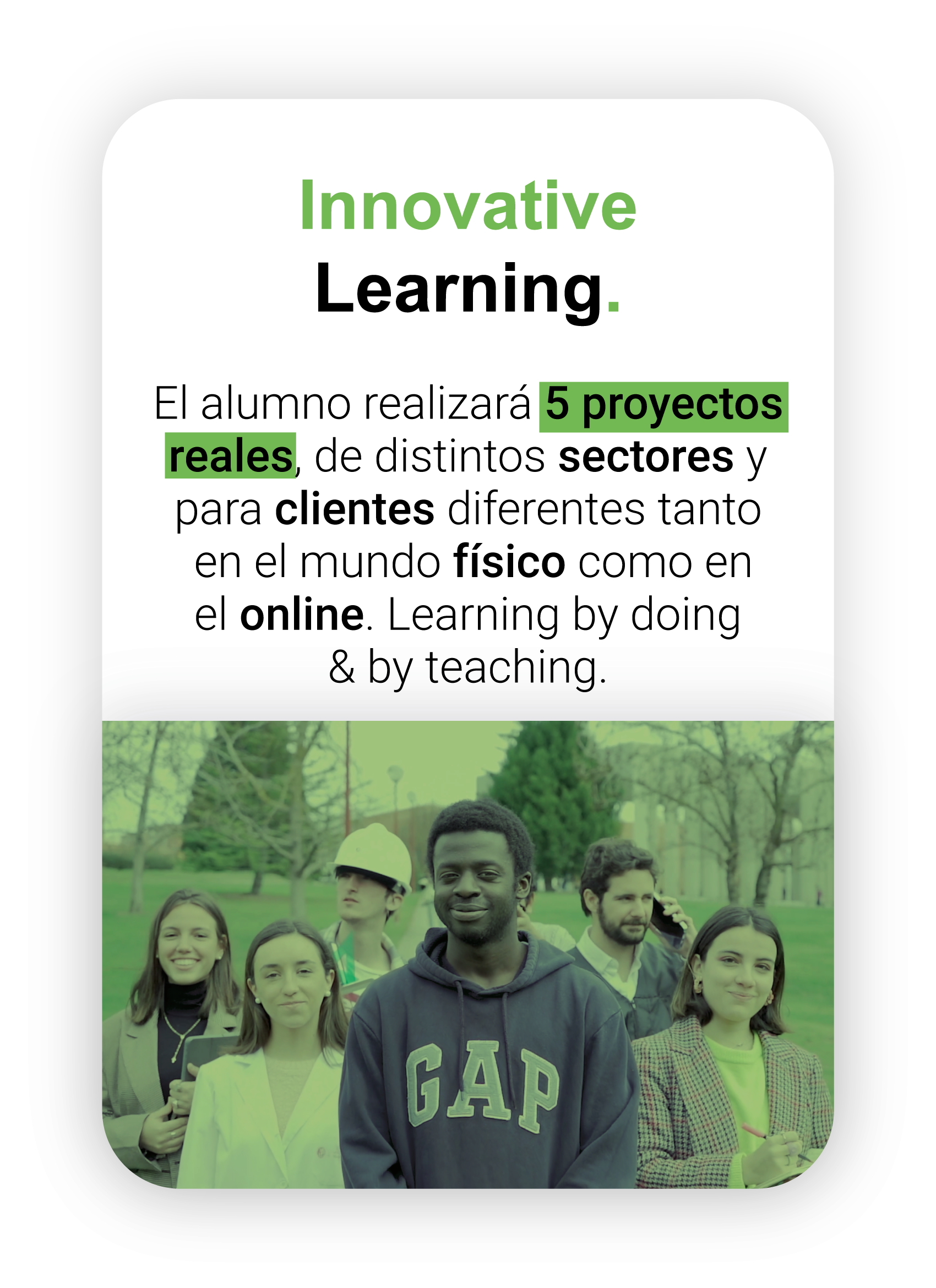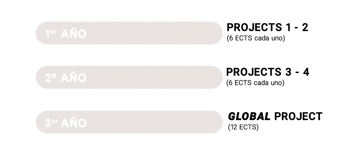 En total, realizarás 5 proyectos emprendedores de diferentes sectores. Dos durante el primer año, dos durante el segundo año y un último proyecto a tu elección durante el tercer año.