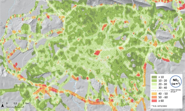 Los resultados obtenidos han demostrado que la distribución de contaminantes está fuertemente vinculada con las fuentes de emisión (principalmente el tráfico) y sus variaciones temporales y, en menor grado, las circunstancias climáticas y el diseño topográfico de la ciudad. Se han observado variaciones importantes en la exposición de los ciclistas a los contaminantes del aire en función de la distancia a la carretera. Viajar por la calzada aumentó entre un 37% y un 54% los óxidos de nitrógeno inhalados con respecto a circular sobre la acera o el carril-bici, mientras que las concentraciones de partículas (PM10 y PM2,5) fueron un 90% y un 52% superiores respectivamente al circular por el eje de la vía. El uso de barreras vegetales, como los setos, ayudó a reducir la exposición de los ciclistas y peatones a la contaminación del aire hasta en un 30%. Este mismo efecto resulta extensivo a los árboles, si bien en determinadas calles se detectó un incremento de la contaminación en un 15% a nivel del suelo. Este aumento de la contaminación está relacionado con la especie, el porte y la ubicación de los árboles, aspectos que deben tenerse en cuenta a la hora de planificar la gestión del arbolado urbano.