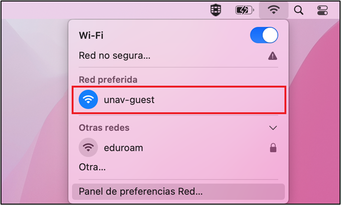 Conéctate a nuestra red eduroam con tus credenciales de la UNAV o de cualquier otra institución adherida a este servicio. Para configurar el acceso en tu dispositivo MacOS, crea una conexión segura siguiendo estos pasos: