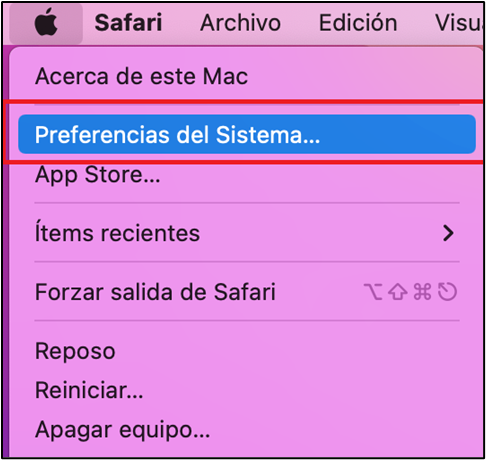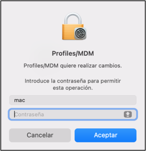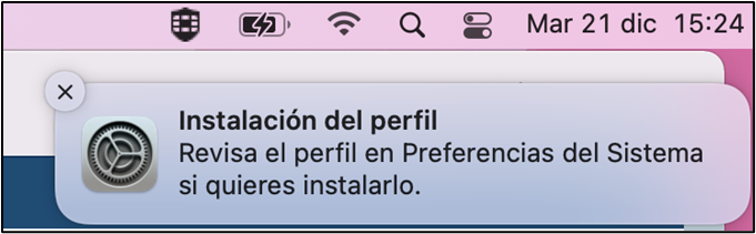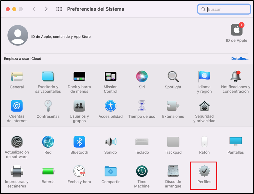 - Accedemos a Manzana → Preferencias del sistema → Perfiles