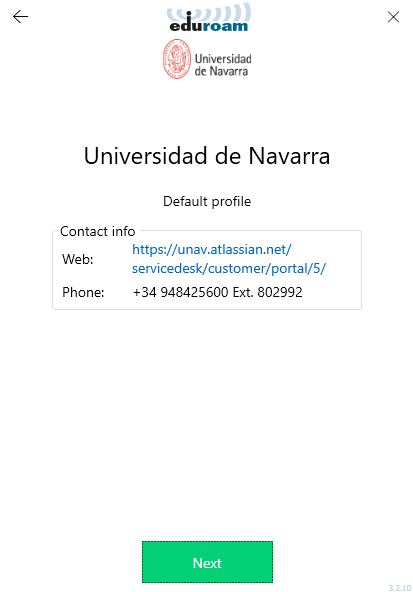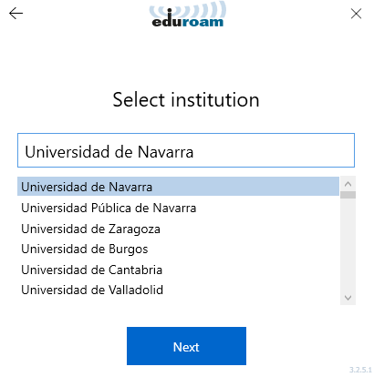 - Busca y selecciona "Universidad de Navarra", luego pulsa "Next".