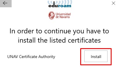- Pulsamos sobre el botón "Install" para instalar el certificado.