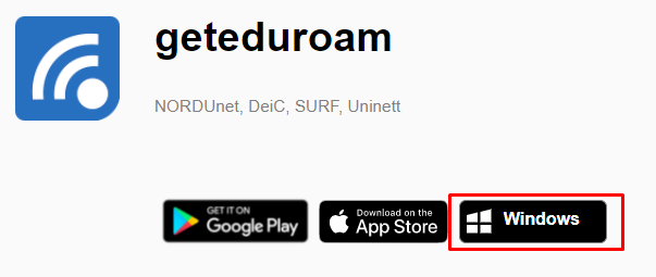 - Descarga la aplicación geteduroam para Windows desde este enlace.
