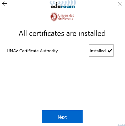 - Nos avisa de que todos los certificados están instalador, pulsamos el botón "Next".