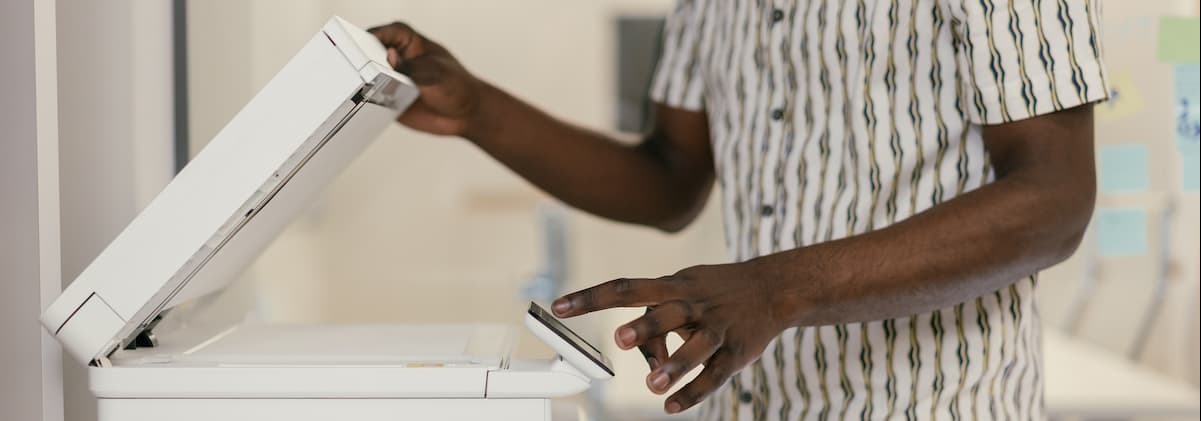 Introduce el documento a copiar en el alimentador con el texto hacia arriba, selecciona los ajustes deseados y pulsa la tecla de “Inicio” para comenzar el proceso de copia.