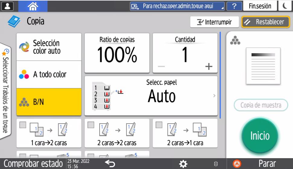 En el resto de modos de impresión siempre es posible elegir ambas funciones (BN/Color y 1c/2c), en el momento de enviar la tarea de impresión.