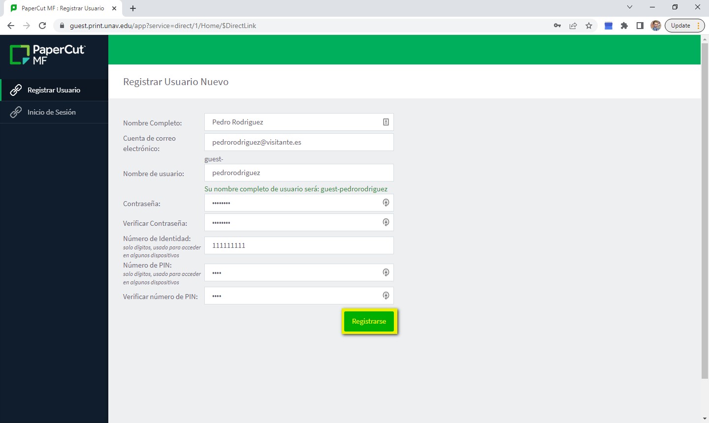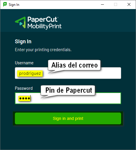 4. La primera vez que lo uses tendrás que validarte con tu usuario unav y el pin introducido en el proceso de alta en Papercut.