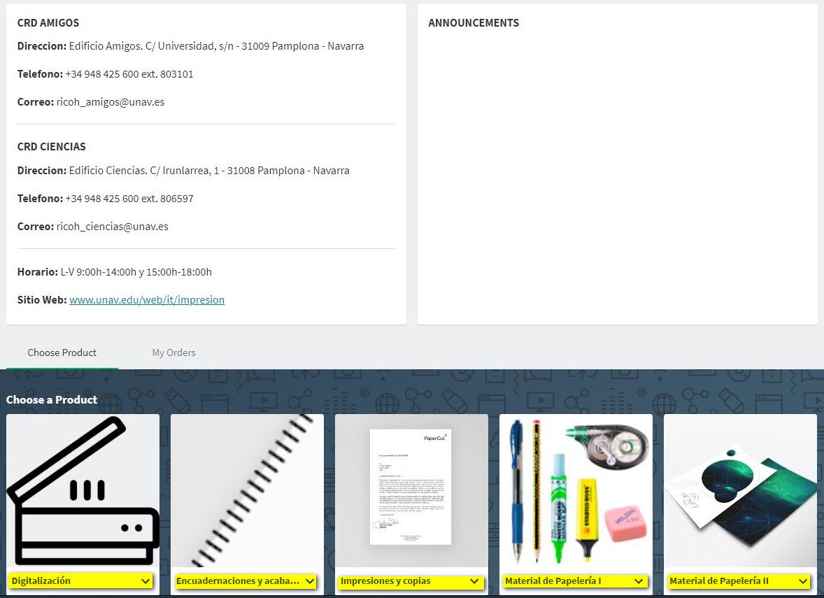 3. Elige el servicio deseado entre los disponibles en el Centro de Reprografía