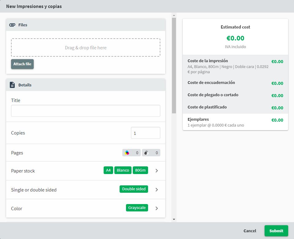 Desde el Portal de impresión, tienes la posibilidad de encargar servicios de impresión avanzados a los centros de reprografia de Amigos y Ciencias.