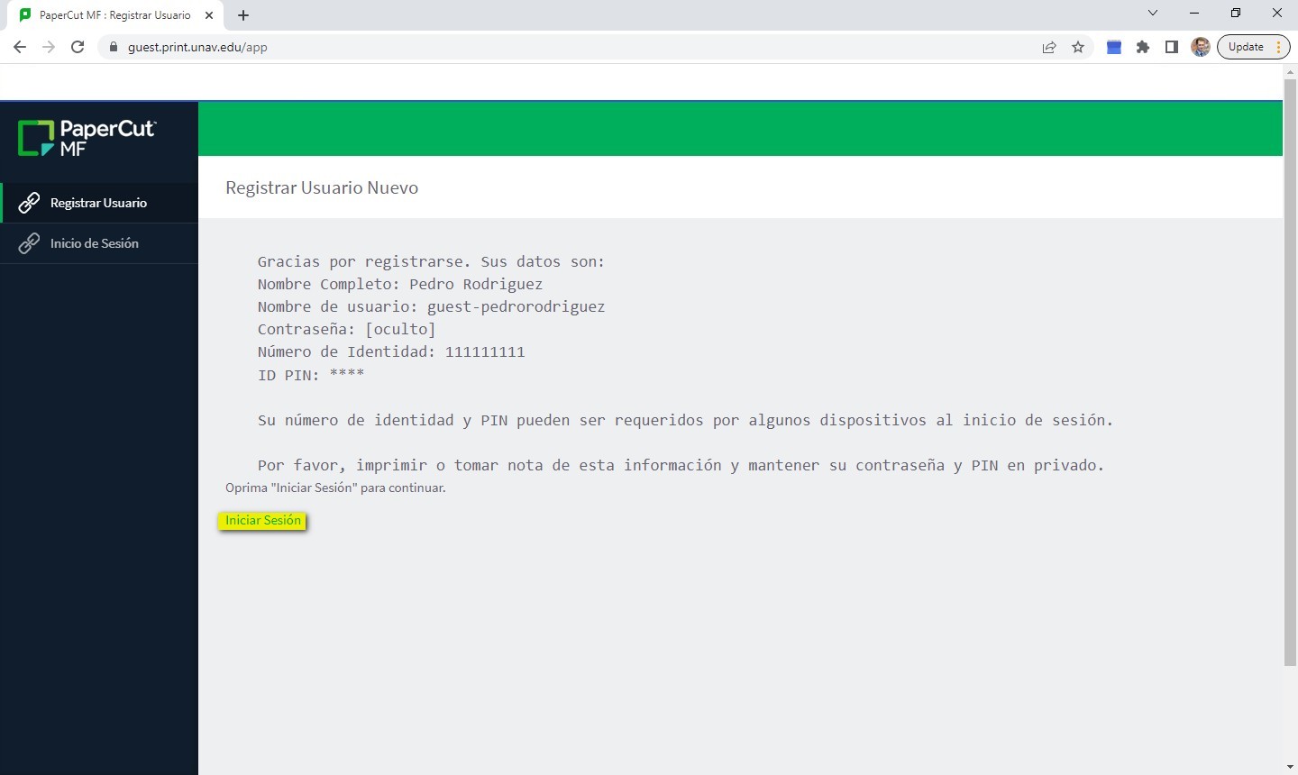 Una vez completado el registro, puedes hacer clic en "Iniciar Sesión" para validarte en el sistema.
