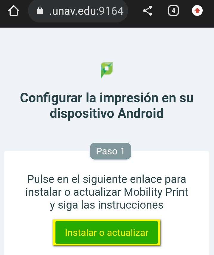 1. Accede al portal de Mobility print y pulsa sobre "Instalar o actualizar".